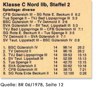 Unsere 1. Jugend-Mannschaft Saison 1977/78: Hinten v.l.: Klaus Voßhenrich, Detlef Schröder, Klaus Schawe, Ralf Speck. Vorne v.l.: Elke Bröder, Bettina Bohr, Rainer Boese.