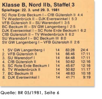 Unsere 4. Mannschaft Saison 1980/81: Hinten v.l.: B. Seeger, K. Schawe, M. Schubert, H. Borgmeier. Vorne v.l.: S. Kuhn, W. Schubert.