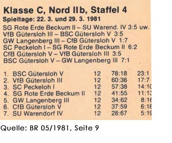 In der Ligasaison 1980/81 trat der CfB mit fünf Seniorenmannschaften, zwei Jugendmannschaften und erstmals mit einer Schülermannschaft an. Mit dem ersten Platz der vierten Mannschaft stand erstmals eine CfB-Mannschaft in der Abschlusstabelle auf Platz eins und errang Meistertitel und Aufstieg.