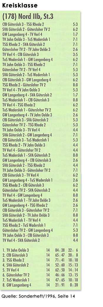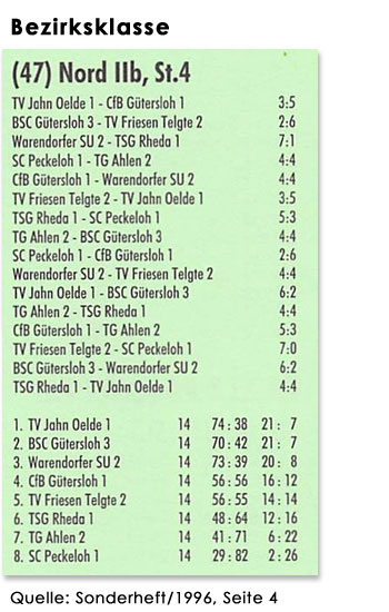 Abschlusstabellen der Saison 1995/96:
