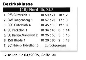 Unsere 2. Mannschaft Saison 2004/05: v.l.: Andreas Grautstück, Tobias Beckmann, Jochen Hanhörster, Jens Rehpöhler, Sandra Henze.