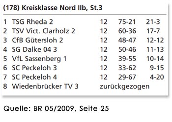 Unsere 2. Mannschaft Saison 2008/09: Andreas Grautstück, Torsten Linke, Lydia Presto, Jochen Hanhürster, Susanne Bork, Marcus Hertel, Michael Presto, Tobias Beckmann, Wolfgang Linnemann.