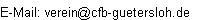 Infos für Sehbehinderte: Unsere Anschrift im Internet lautet: "verein", danach das bekannte at-Zeichen, und dann der Vereinsname "cfb-guetersloh", gefolgt vom Punkt (oder auch dot) und dann für Deutschland das Kuerzel "de".